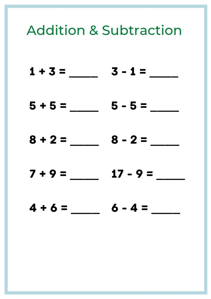 Addition And Subtraction Worksheet